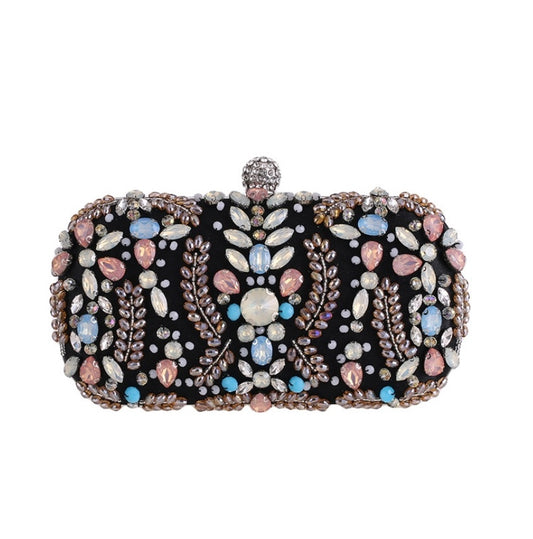 Black Evening Bag – Floral Rhinestone Luxury Clutch