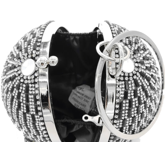 Silver Evening Bag – Rhinestone Floral Design